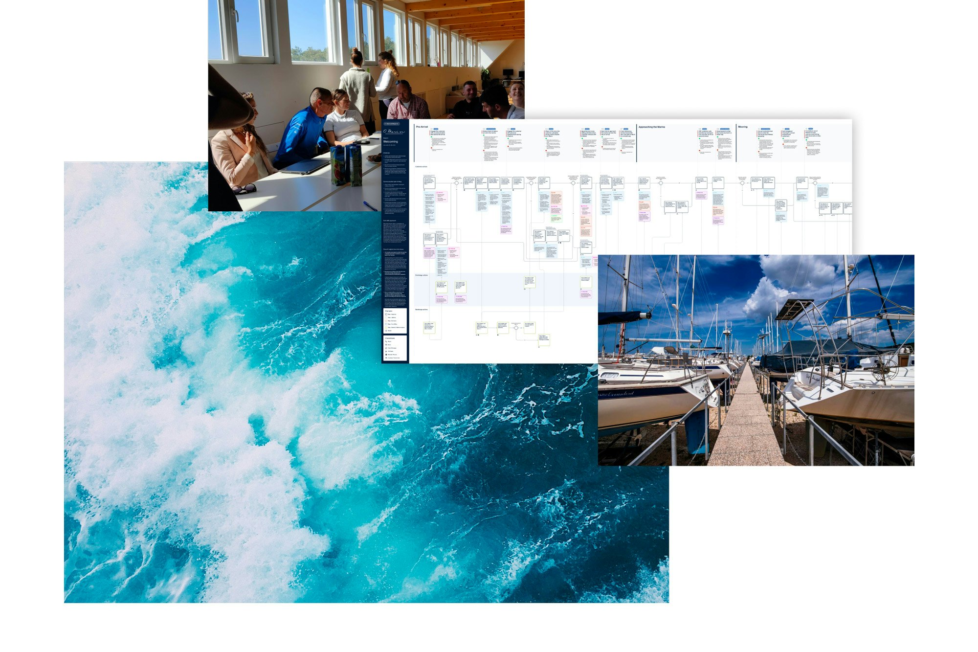 The research phase during the first iterations let the team gather insights about the recent experience in the marinas to understand users’ pain points and expectations. This know-how led to the design of a new overall experience with a clear strategy for every customer phase. Five new blueprints are the base of an international training program, and new digital assets help convey the desired experience.